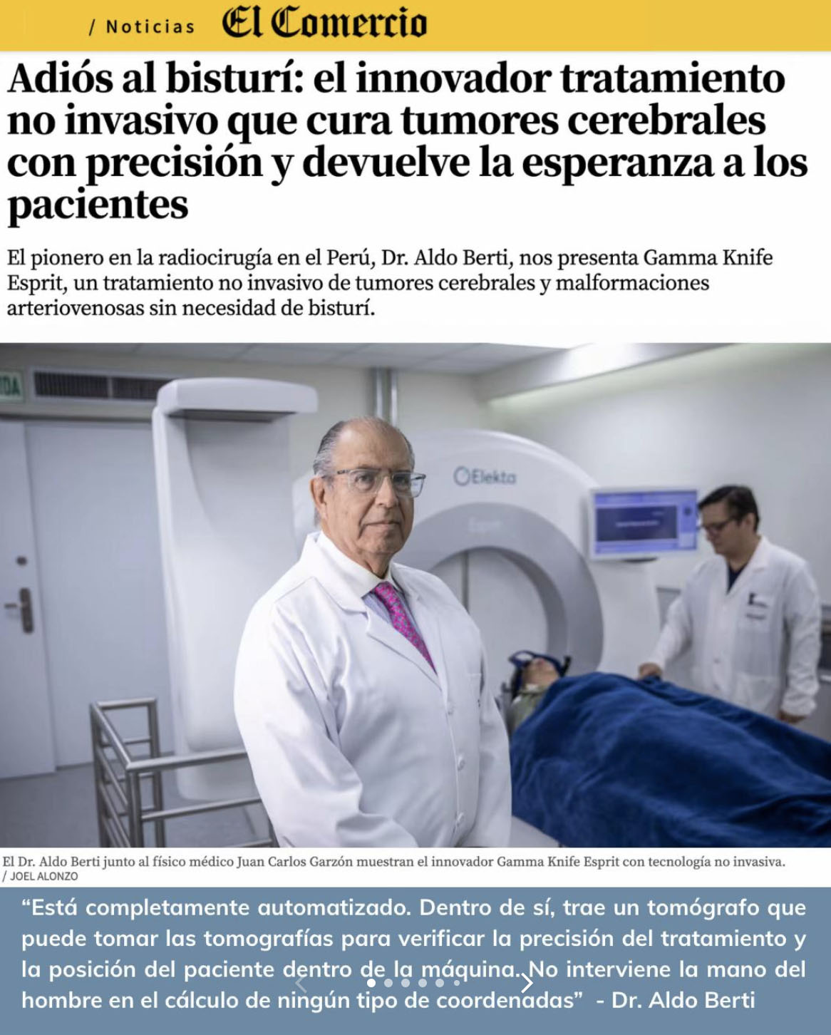 El pionero en la radiocirugía en el Perú, Dr. Aldo Berti, nos presenta Gamma Knife Esprit, un tratamiento no invasivo de tumores cerebrales y malformaciones arteriovenosas sin necesidad de bisturí.